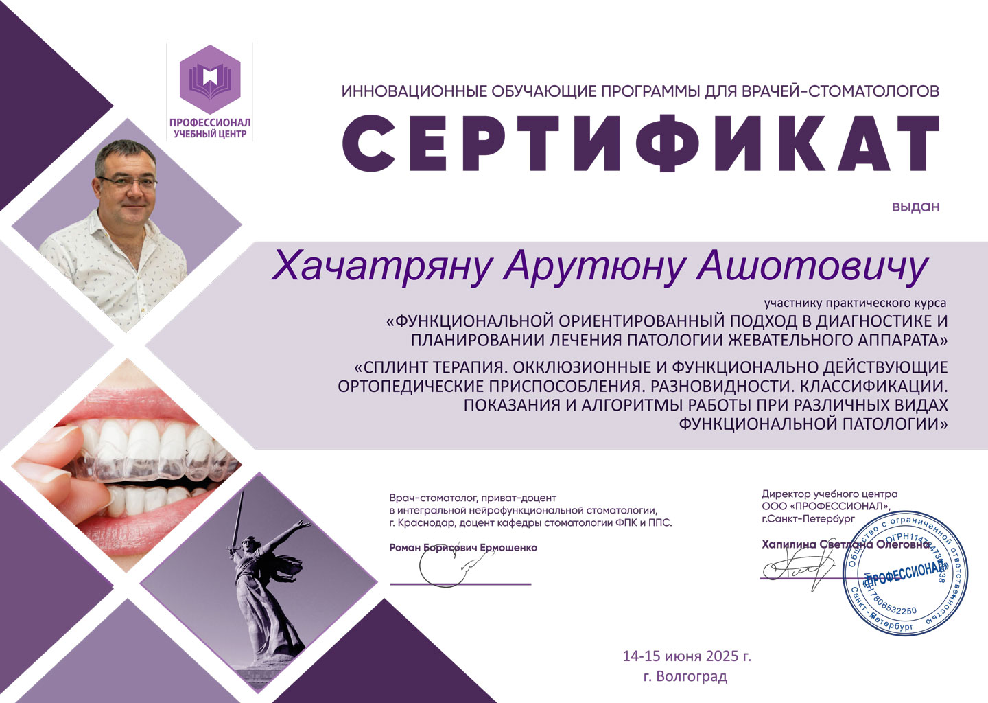 В 2025 году прошел повышение квалификации по профессиональной программе «Стоматология ортопедическая» в ООО Центр Специализированного Образования «Проф-Ресурс»